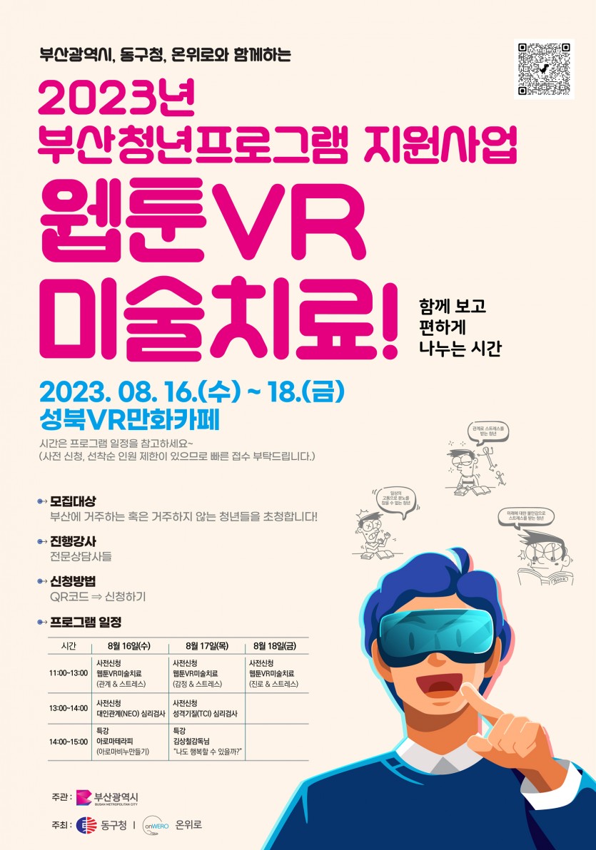 웹툰 VR 미술치료 페이지 정보 작성자 최고관리자 작성일 23-08-14 15:27 본문 웹툰 VR 미술치료 목록 이전글기독교 상담 프로그램 24.03.23 다음글한 해 300건 넘는 청년 상담..."교회 내 어른의 부재 때문" 23.03.22 댓글목록 댓글목록 등록된 댓글이 없습니다.